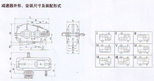 5、減速器有九種傳動(dòng)比,九種配置型式和三種低速軸軸端型式。
